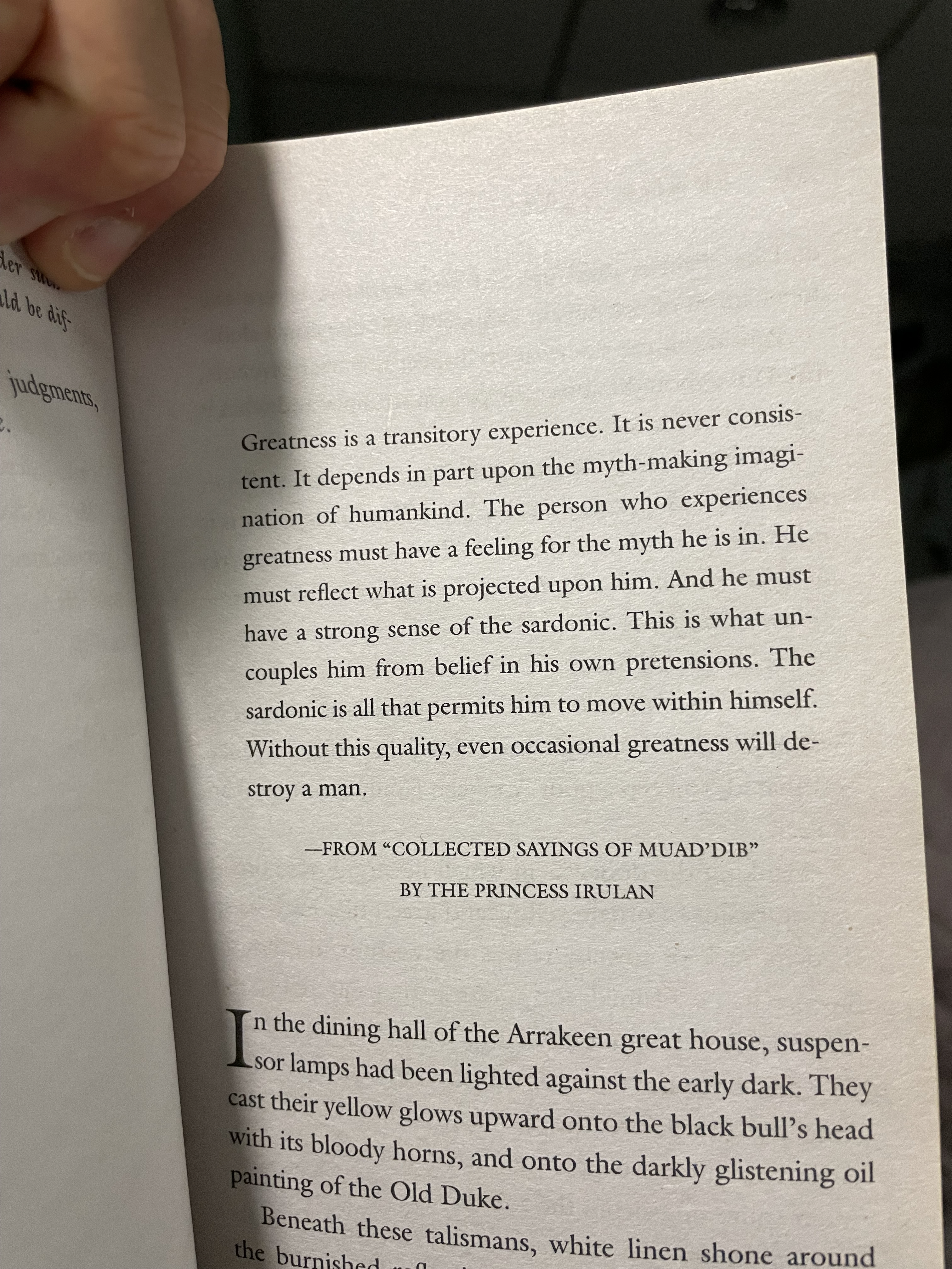 Mastery of weaving a story of suspense and developing characters and worldbuilding. So many layers of tnemes to take away from the book, ranging from ecology to drugs to politics to religion, etc.