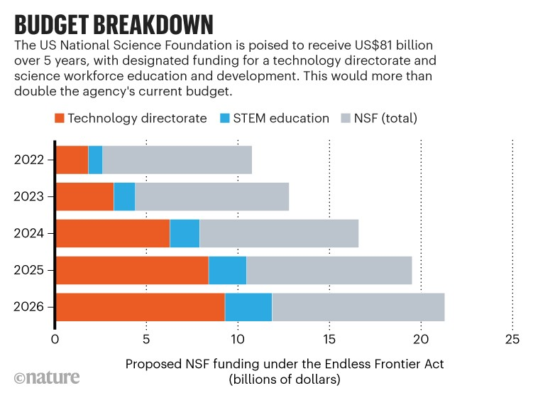 The US Senate has voted overwhelmingly in favour of legislation that invests heavily in the US National Science Foundation (NSF). But the bill, once aimed primarily at helping the United States to maintain its status as a global leader through direct funding for research and development, now includes amendments aimed at preventing China from stealing or benefitting from US intellectual property — a development that scientists fear could threaten international collaborations.