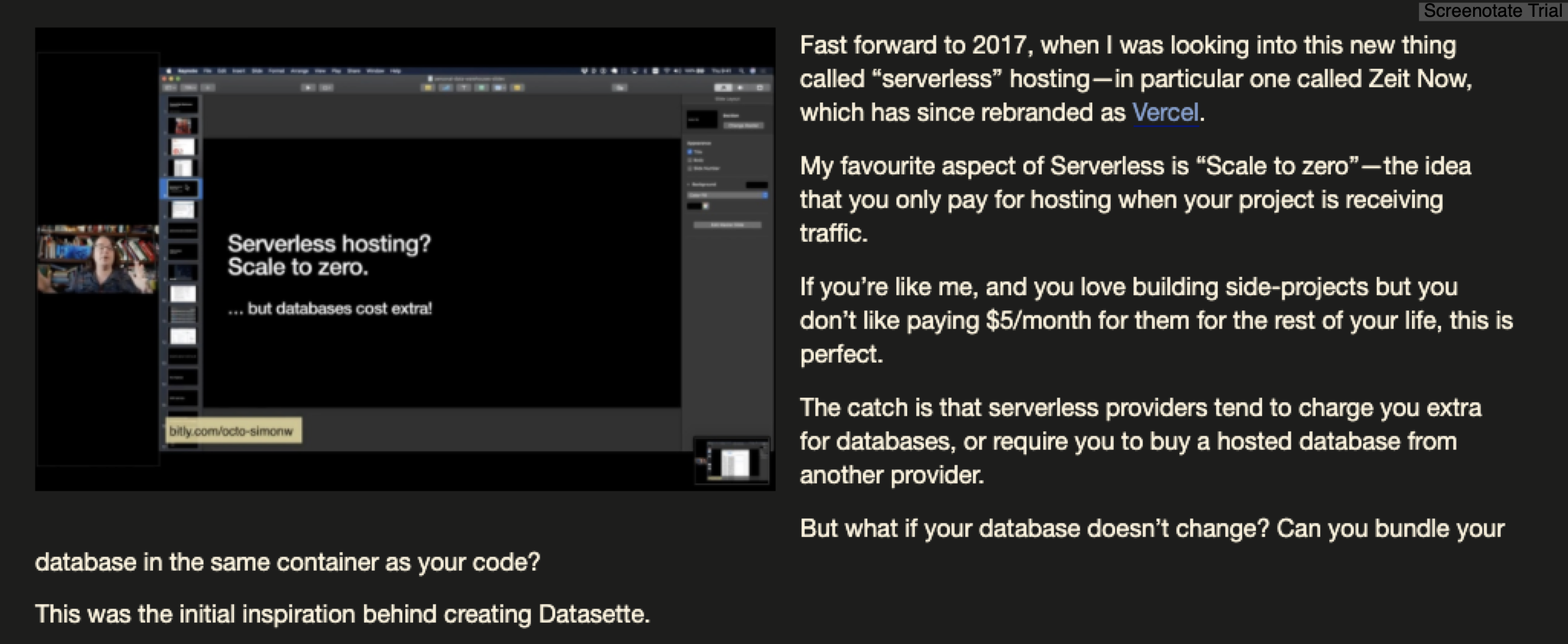 - Key is using serverless hosting (which charges for traffic), like vercel and then bundling a static, read-only database with it.