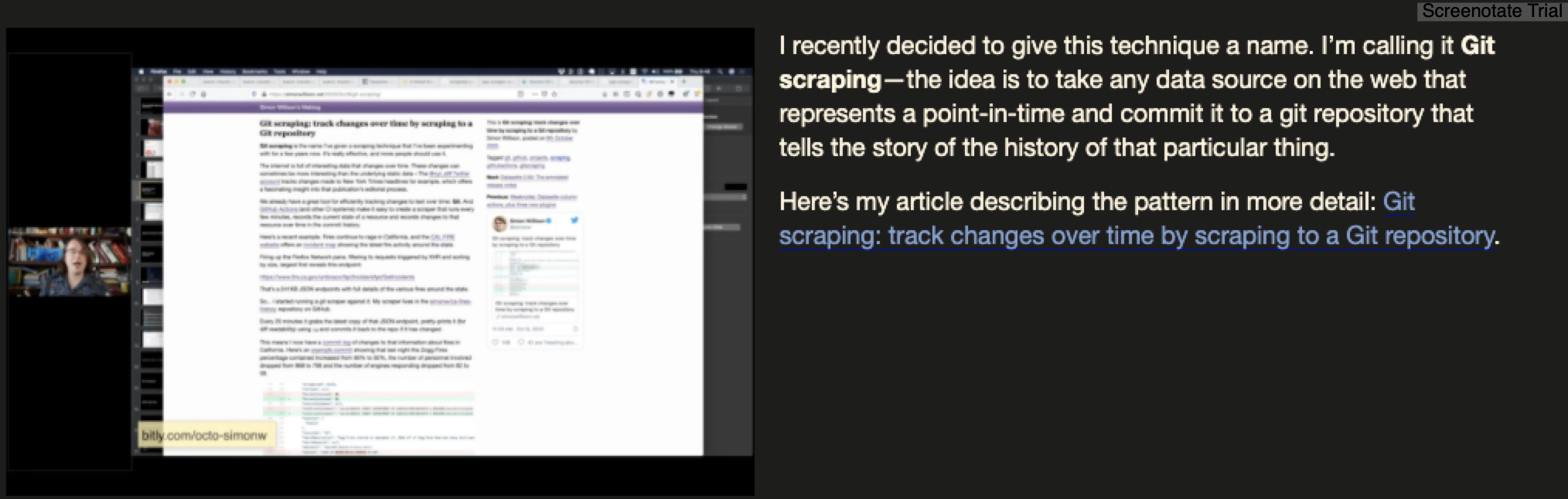 - One pattern that emerges from this is scraping, an offline process of gathering data and updating it via a commit model like Github.