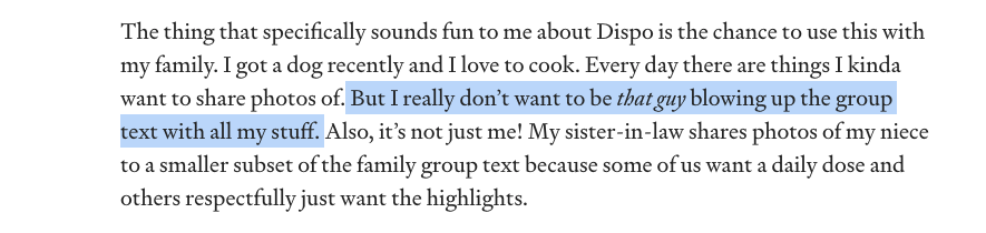 - But I really don’t want to be __that guy __blowing up the group text with all my stuff.