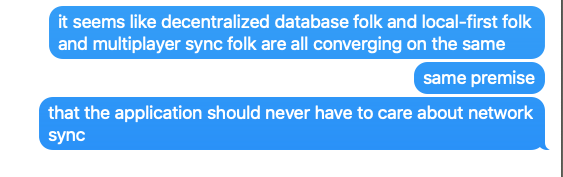 decentralized software is making another rise with the recent explosion in popularity of CRDTs, popularized by martin kleppman. These new data structures “solve” the problem of conflict resolution among replicated data types in a distributed system, so that many clients with different states of the same data can all operate independently and sync when consistency is needed.