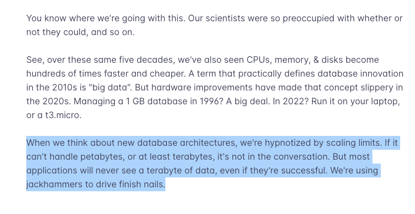 - on why sqlite over a managed db service