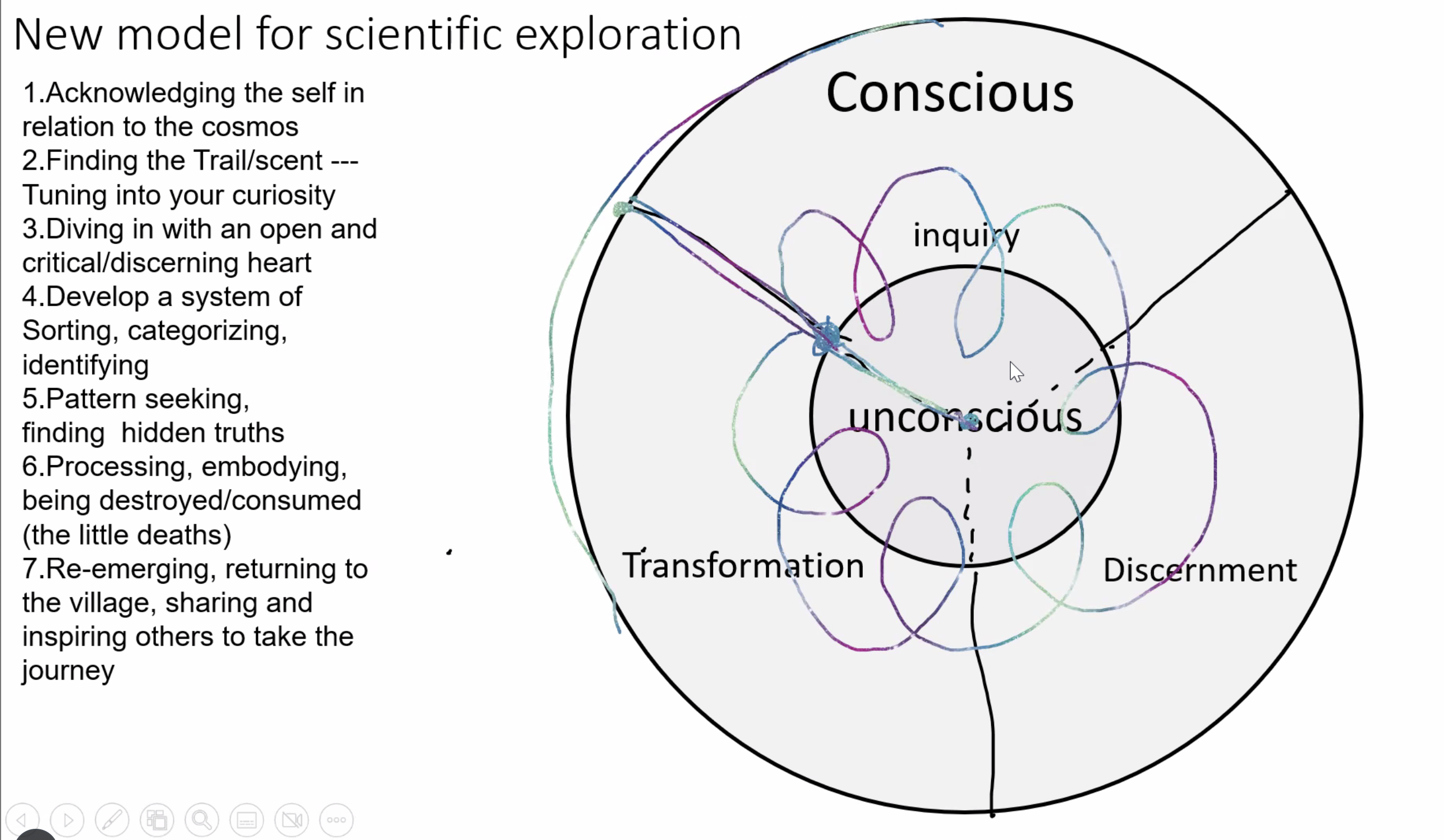 - infinite differentiation: the universe is differentiating itself, creating new expressions of itself infinitely to come back to the singularity. constant cycles between infinite and a single point.
