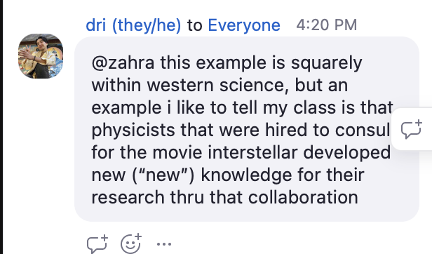 - so much of our class happens in the chat