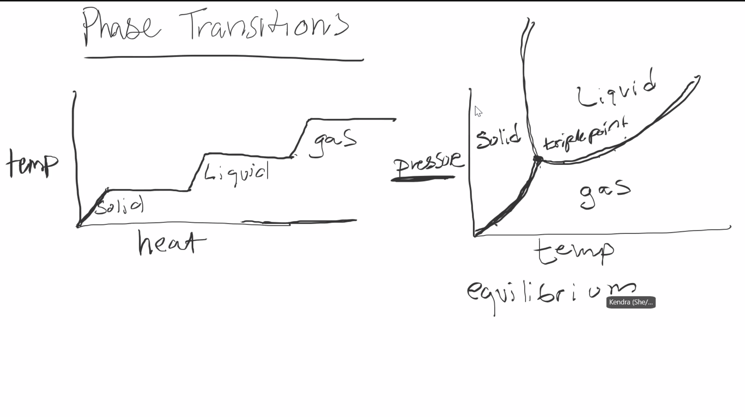 - triple point: equilibrium point where even amount of one phase and the other