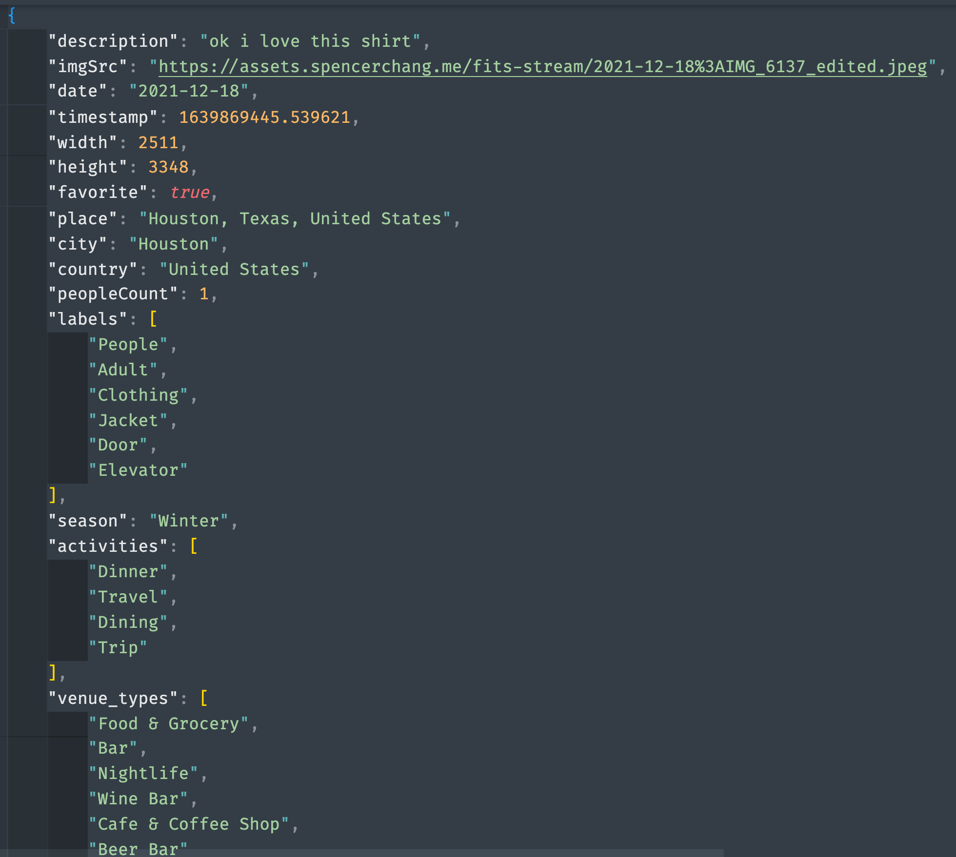 season,labels(which I have a filtered list of relevant clothing ones which could be used to “guess” # of layers),activities,venue types, and the location