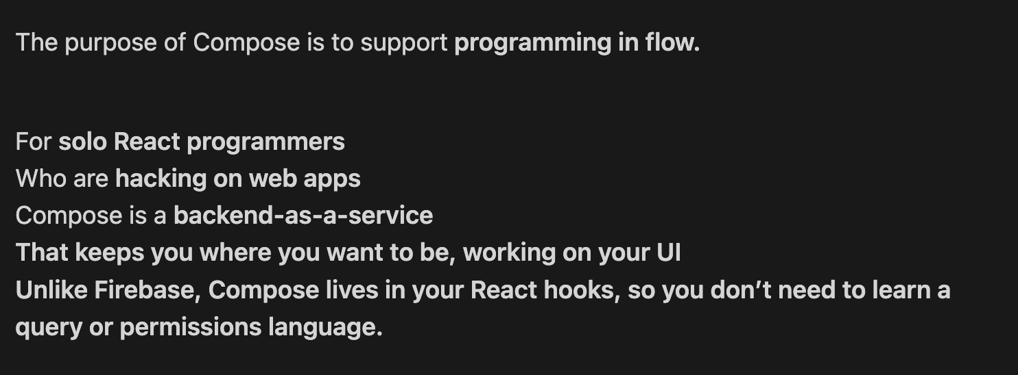 - this only works because everyone bringing their own databases removes the need for scale… if you don’t need to host everyone’s data for them then you get around all the complexity of scale and permissioning and translation (because you are just persisting the exact state)?