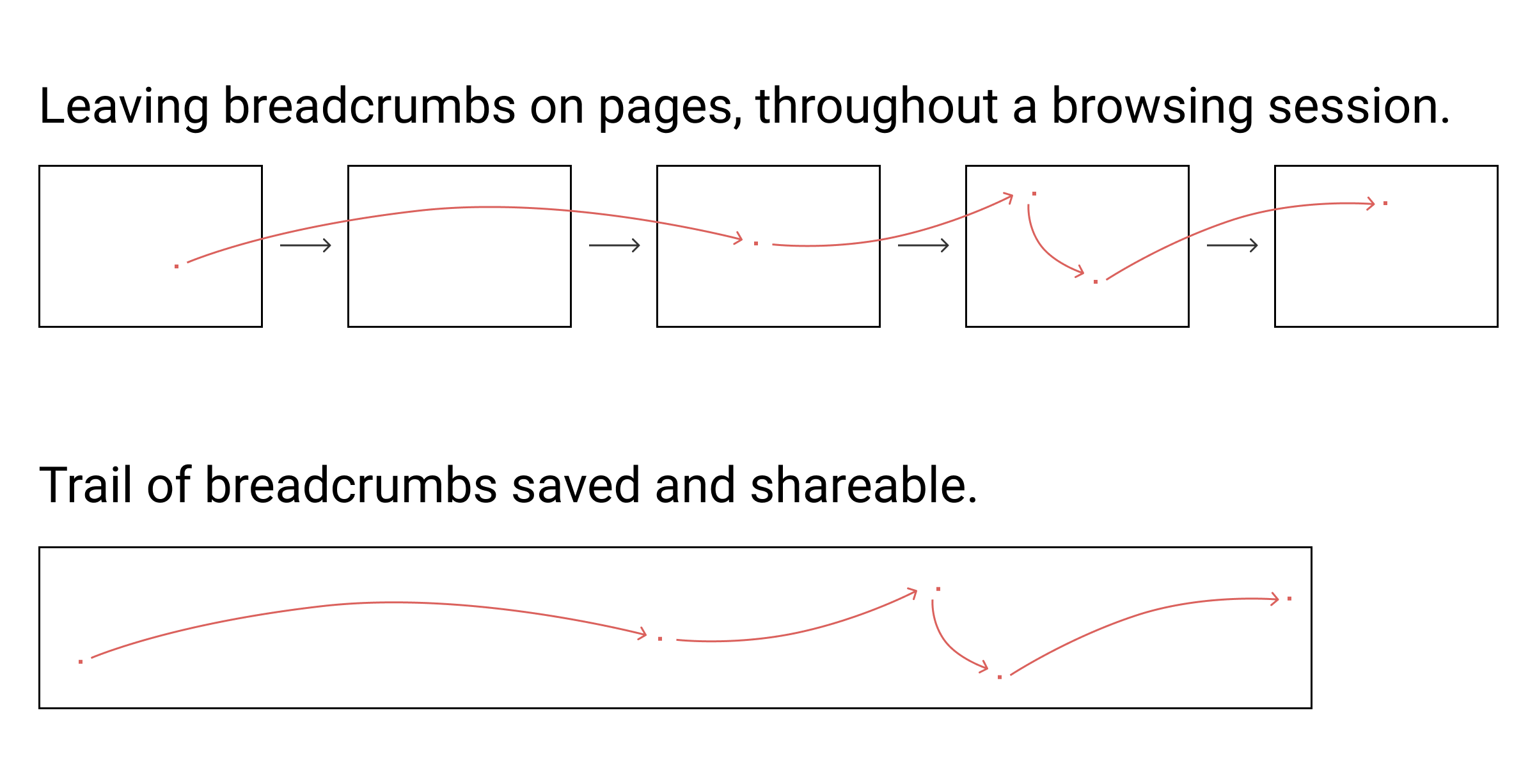 - One example is an idea I call “trails.” It’s based on the story of Hansel and Gretel walking through the forest and leaving a trail of breadcrumbs behind them, so that they could find their way back later. What if you could do this on the web?