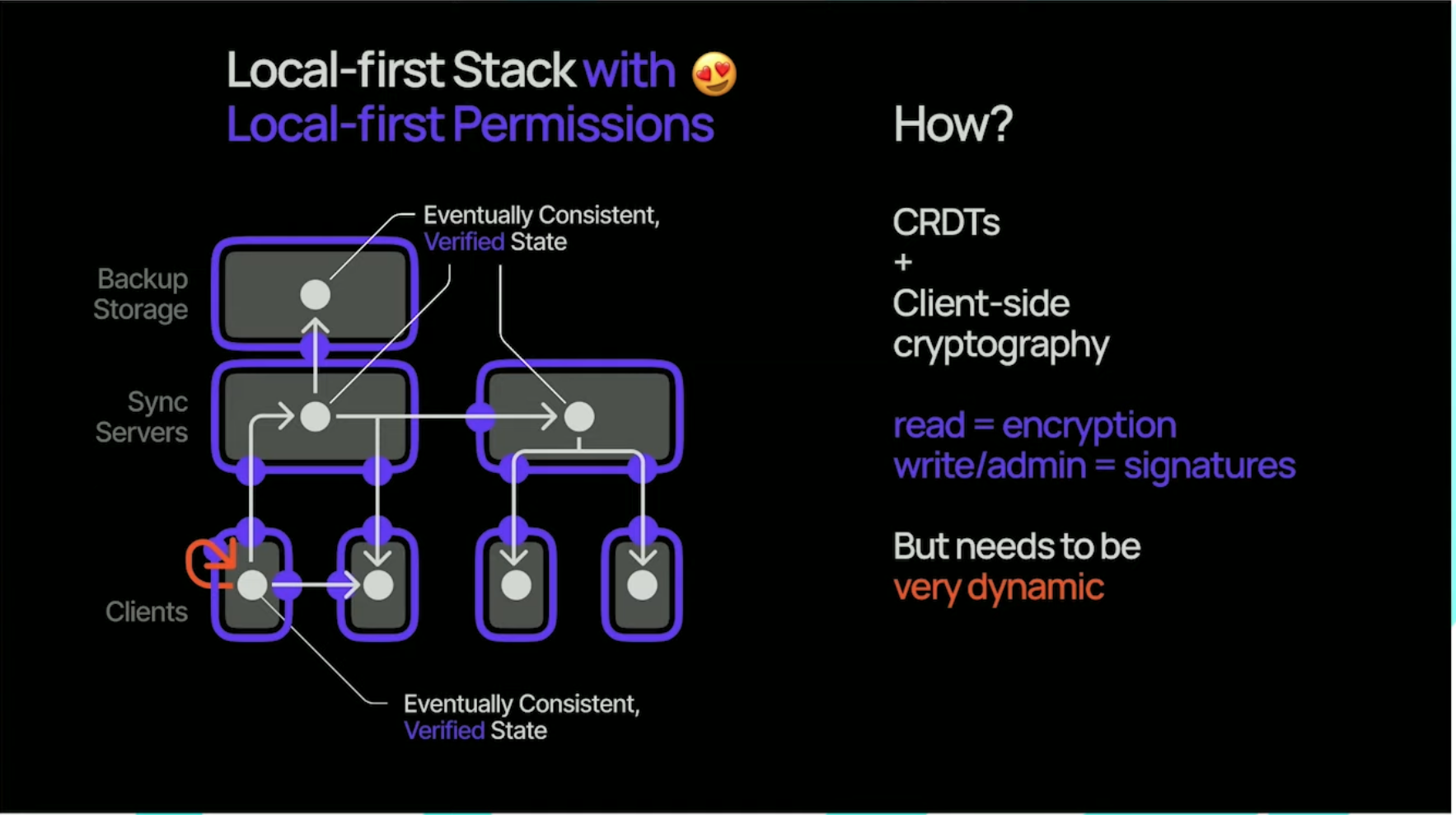 Software that operates local-first, that is, should work entirely offline. These often involve using CRDTs in order to sync data between clients that can be in-conflict with each other and resolve those conflicts and ordering of operations.