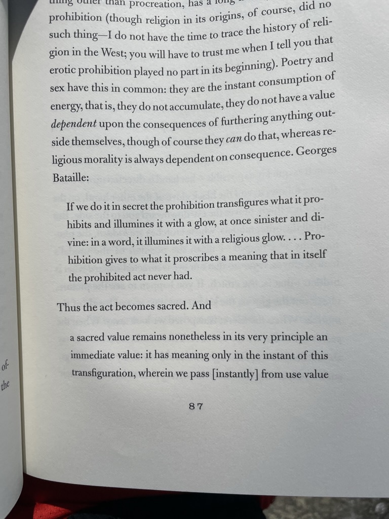 - ”==[poetry] is the instant consumption of energy, that is, they do not accumulate, they do not have a value dependent, upon the consequences of furthering anything outside themselves, though of course they can do that==”