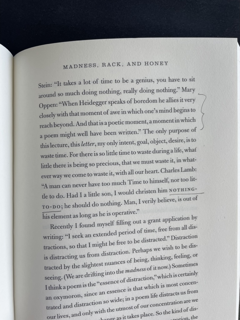Mary Oppen: “When Heidegger speaks of boredom he allies it very closely with that moment of awe in which one's mind begins to reach beyond. And that is a poetic moment, a moment in which a poem might well have been written.”