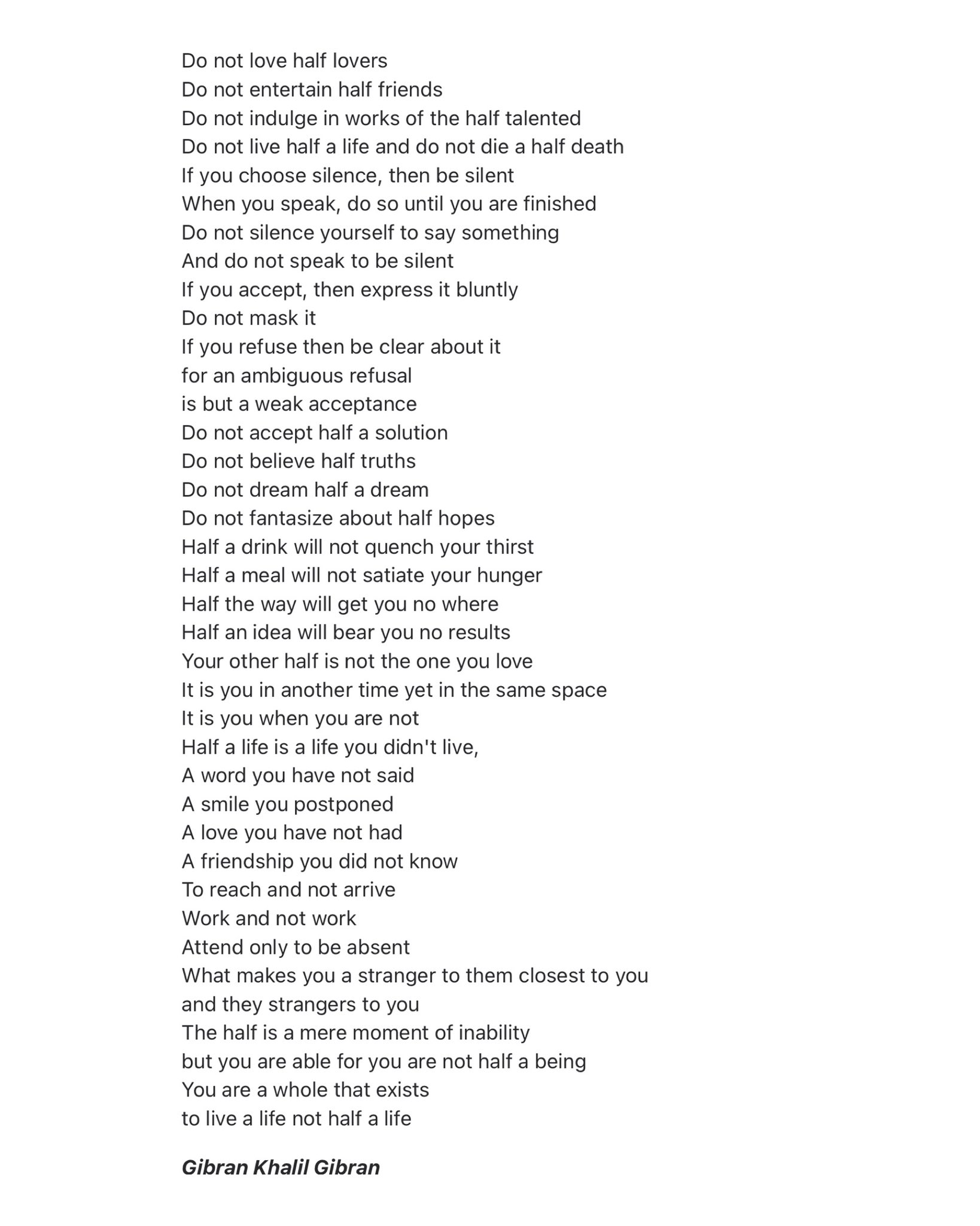 Do not live half a life